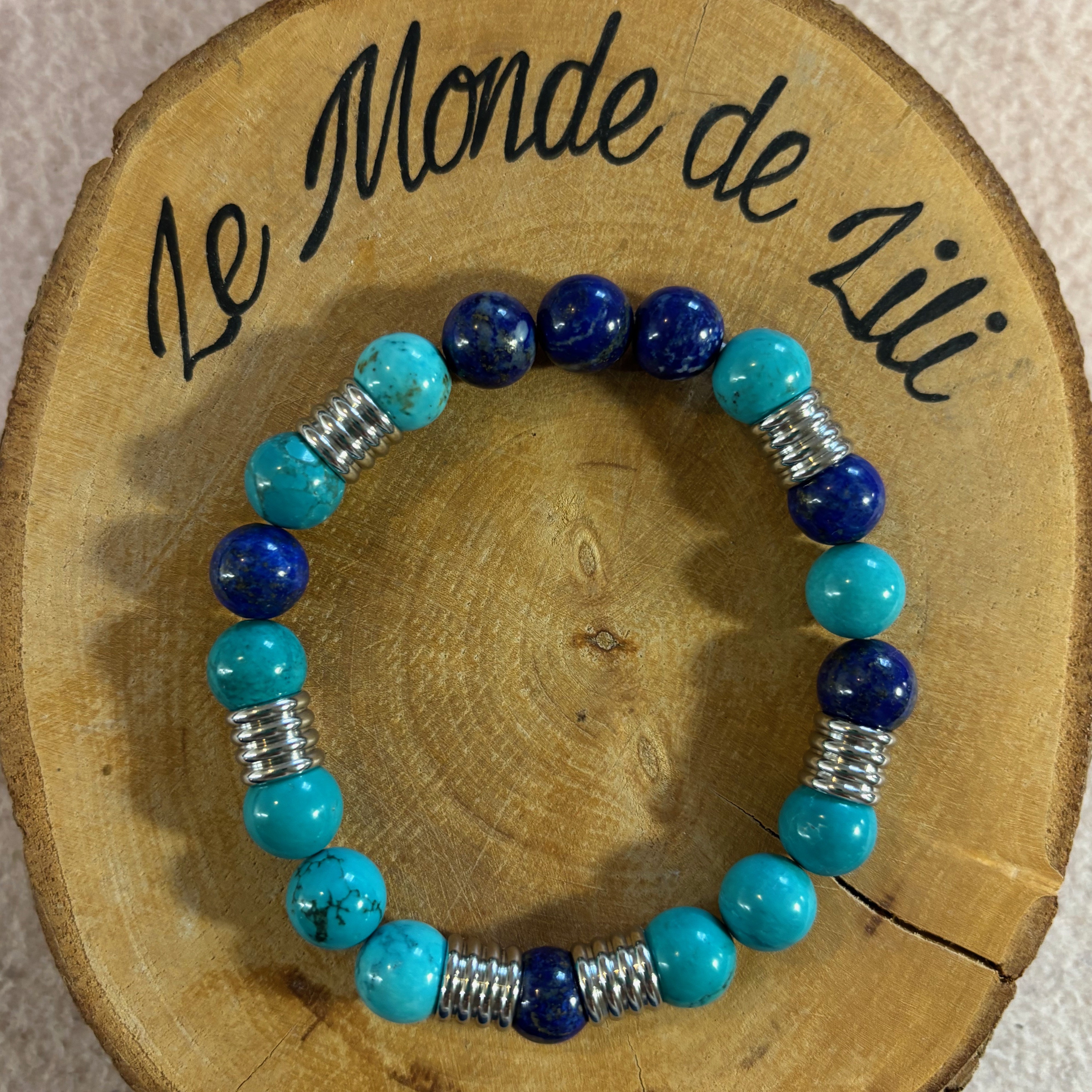 Sodalite, turquoise et acier inoxydable.