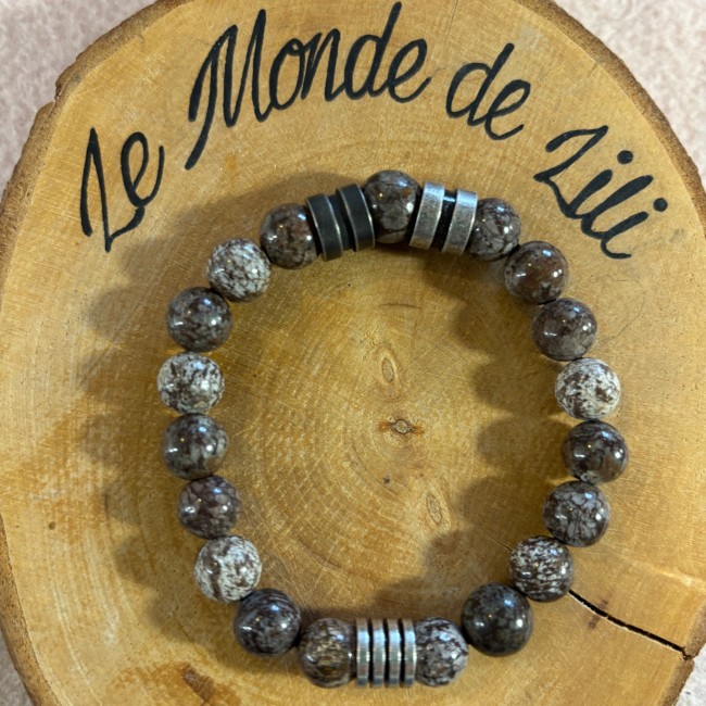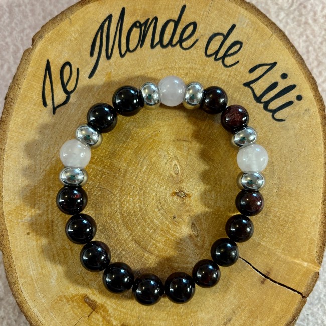 Obsidienne flocon de neige rouge et acier inoxydable.